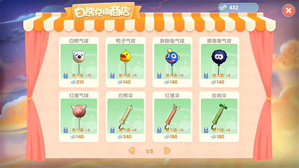 魅力值:白熊气球+10魅力值、鸭子/胖胖鱼/嘟噜噜/红猪气球+8魅力值