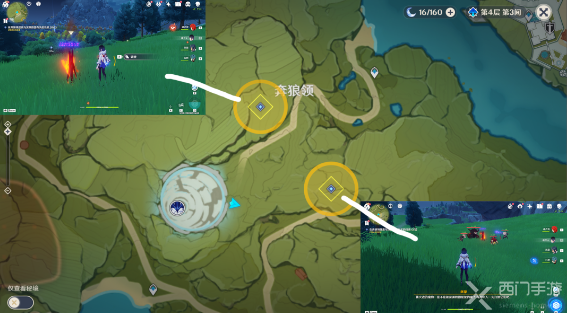 ③第三个区域,可以看到一个火深渊法师和一群丘丘人,一个普通的宝箱在图示标记处,宝箱④。