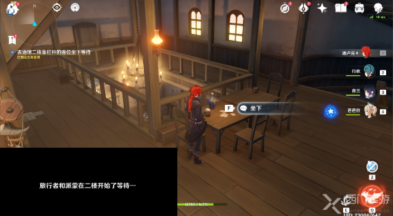 5、去酒馆二楼靠栏杆的位置坐下等待;