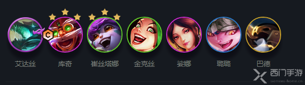1、阵容组成:库奇、奥恩、娑娜、巴德、崔丝塔娜、金克丝、赛娜、璐璐、塔姆