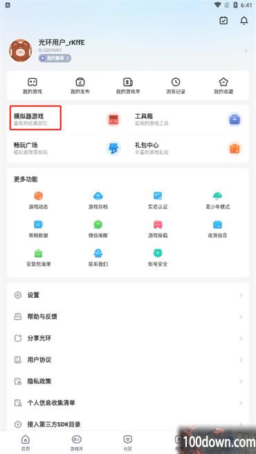 2.最后在我的页面中就可以看到【模拟器游戏】了;