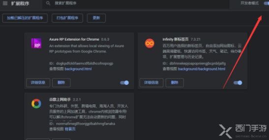 3.然后打开打开chrome浏览器的设置, 选择倒数第二行的拓展插件,接下来可以打开右上角的开发者模式;