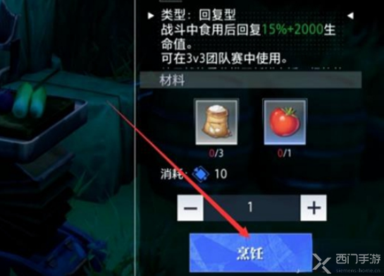 3、等到达烹饪台附近之后,靠近就会有【烹饪】的交互键,玩家点击即可进入烹饪界面;