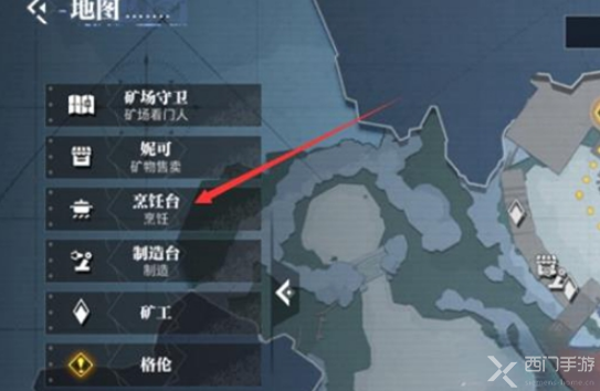 1、进入游戏之后,点击打开地图,然后会有烹饪台的位置显示;