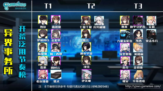 部分角色节奏榜: