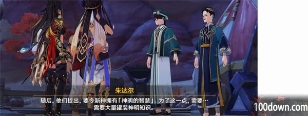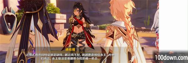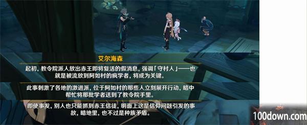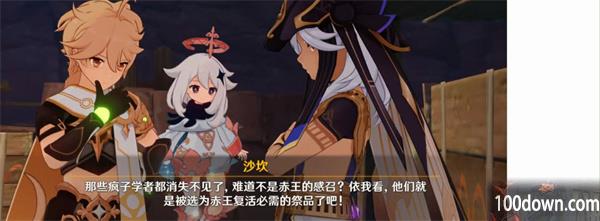 通过调查知道,赤王是曾经统领须弥沙漠的神明。信仰赤王的镀金旅团绑架了阿如村的学者,再把学者们交给幕后主使,希望幕后主使复活赤王。