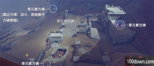 接下来使用草元素,点亮其他的三个草元素方碑就行。