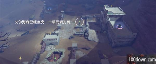 艾尔海森已经点亮一个草元素方碑,图示: