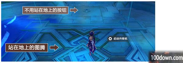 图示,我们站在地上的图腾,启动升降机,进入下一个房间。下一个房间,开始这个秘境的第2个解谜。