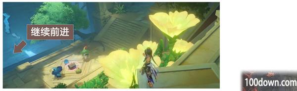 图示七天神像出发,图示路线,前往镀金旅团营地,更快。