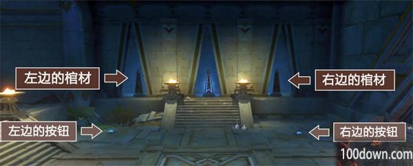 这里的房间,左边的按钮控制左边的棺材,右边的按钮控制右边的棺材。