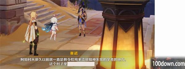 任务开始,赛诺和我们调查阿如村的学者的失踪事件。