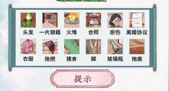 晾衣架上的衣服、包里的离婚协议、奇怪的拖把、古怪的猪食、奇怪的玻璃瓶。