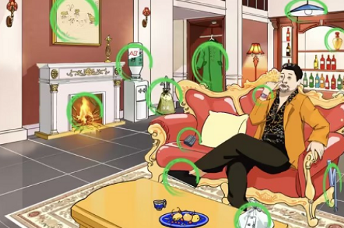 2、滑动打开衣柜门可以找到【绿色大衣】,天花板上挂着【老式吊灯】,酒柜里面有【萝卜泡酒】,徐总穿着【布鞋】;