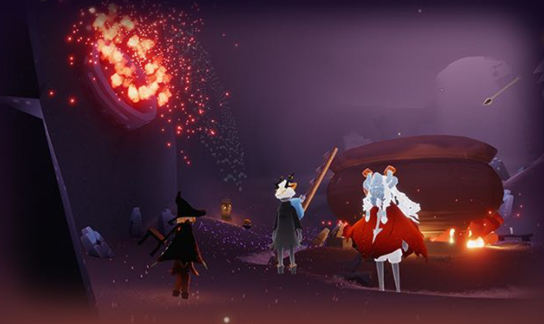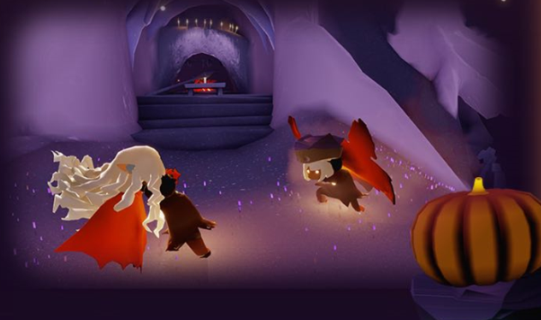 恶作剧之日期间,遇境将生长出一簇结着大南瓜的黑暗植物,燃尽后跳出的小遇,将指引派对的入口。节日期间,天空王国的引路人将在禁阁的神秘场所入口处等待大家。