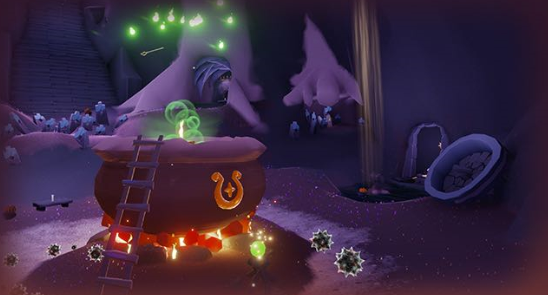 进入女巫的诡秘派对,点燃绀蜗,收集萤火,燃烧掉落的灰烬即可获得随机魔法;或是与好友同乘扫把,蛛网嬉戏,在场内抓获游走的小光和小遇还可获得节日惊喜~