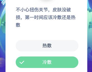 不小心扭伤关节,皮肤没破损,第一时间应该冷敷还是热敷-12月13日蚂蚁庄园答案