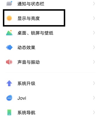 2、进入设置界面后找到其中的【显示与亮度】选项并点击,手机型号不同其名称也有所区别;