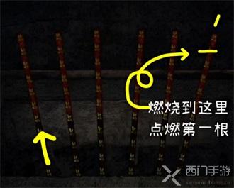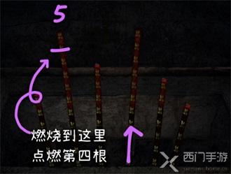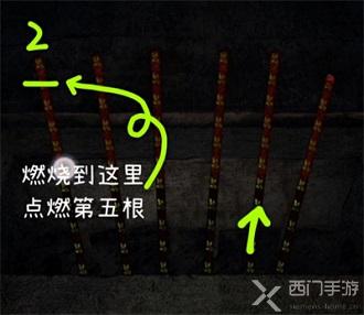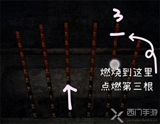 4、等待第五根香燃烧到第二个符文的时候去点燃第三根香;