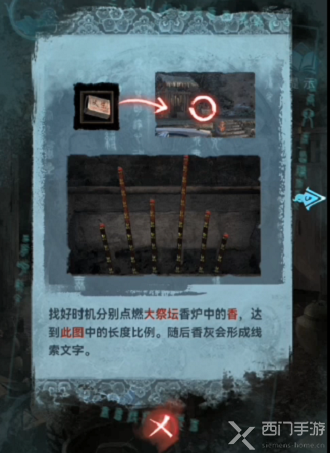 6、第二根香燃烧到第二个符文的时候再去点燃第四根香,这样最后就可以获得密码了。
