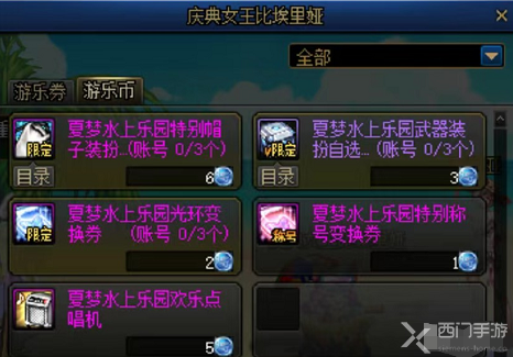 通过购买“夏梦水上乐园欢乐点唱机”,使用称号、光环兑换成欢乐点唱机进行抽奖,有几率抽出账号绑定的别致款装扮和武器;
