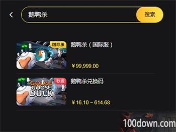1、首先玩家需要进入代充平台,进入之后搜索goose goose duck/鹅鸭杀名字;