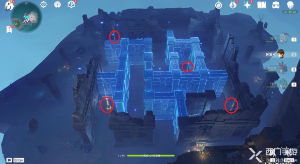 4、玩家要进入迷宫找四个水元素方碑,位置如下图: