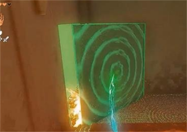 5、同样用组合体阻挡火焰喷着装置的火焰,激活重力板打开机关。