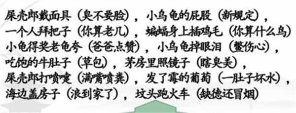 本关考验玩家是否知道这些歇后语,不熟悉的玩家参考攻略即可。