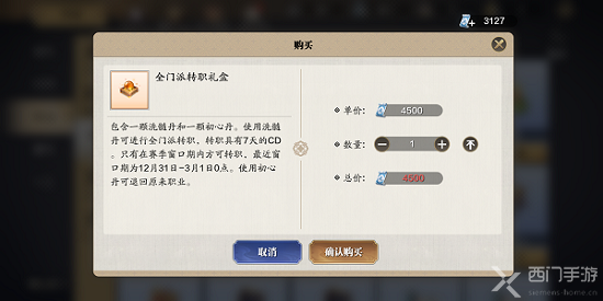 1.在商城-珍品-功能中,可以找到一个“全门派转职礼盒”,点击花费4500绑定点券就可以购买,其实在游戏中很多玩法中都会送绑定点券的,并不需要充值rmb