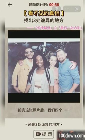 1、这个关卡的提示是:找出三处诡异的地方,拍完这张照片后,我们四个......