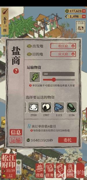 7.给盐商升级,然后可以招到人力盐商和建筑盐商,补充运力,不靠杭州商栈来挣钱非常慢。