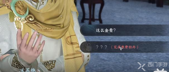 4、然后传送到宴会界面,在与宴会npc们的对话中,首先选择上方的选项【这么金贵】;