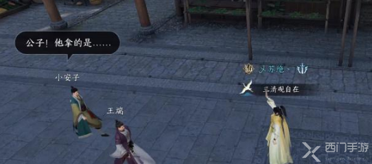 3、拿到风筝后,先与屋外的一群人对话,之后需要跑到街上,跟下图二位npc对话,在对话过程中,选择【应邀前往宴会】;