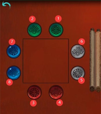 6、按照下图顺序,在人偶房间移动椅子在门上可以找到左半边画卷;