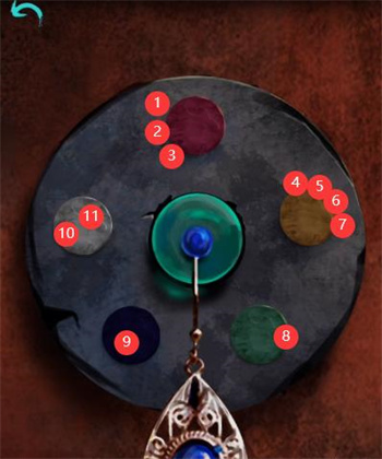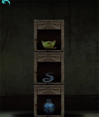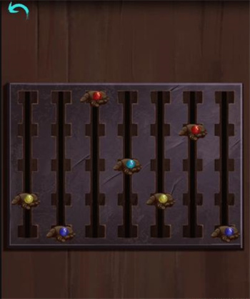8、根据柜子的提示调整左边的机关如下,中间房间的柜子有个重力迷宫,打开得到木偶制作线索,椅子移回来掀开上方彩色布条可得到【天珠手串】;