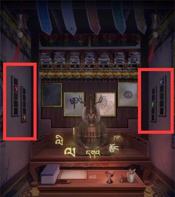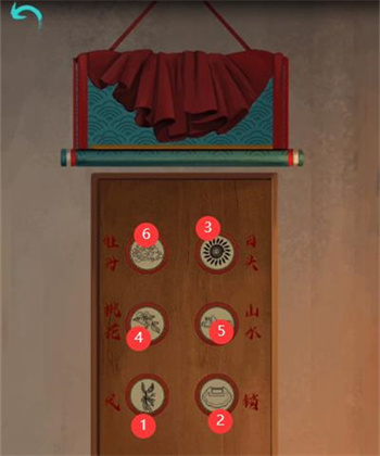 7、根据画卷上的文字提示如下打开右边的门;