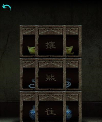 10、根据女石像上鼓的提示,得知旋转文字的机关密码为【攘熙往】得到【石狮摆件】;