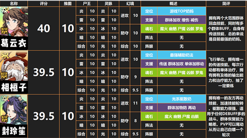 葛云衣(最强奶妈),相桓子(最强奶辅),封铃笙(驱散奶)