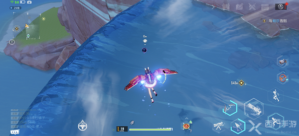 如果是比较高的,游过去也收集不了,但是又不可以直接跳起来,这个时候,玩家可以使用飞行背包,在岸边的时候先点击飞行背包飞起来,然后飞到黑核的位置,往下落,只要经过黑核就可以自动收集了。