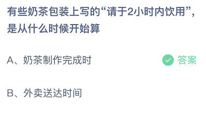 有些奶茶包装上写的“请于2小时内饮用”,是从什么时候开始算?这是今日的蚂蚁庄园小课堂的问题,很多玩家都比较关注这个话题,接下来就让小编为大家详细介绍一下,希望可以帮助到大家。