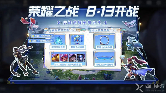 8月13日当天登录,即可领取荣耀值*50。8月13日进行5V5对局一次,即可领取荣耀值*50。累计荣耀值达到100即可领取皮肤大奖(完成任务获得的荣耀值将不会体现在英雄荣耀榜单和个人贡献榜单上)。