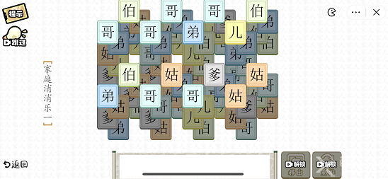 第一关很简单,只要将【伯伯伯】、【弟弟第】、【爹爹爹】都找出来即可。