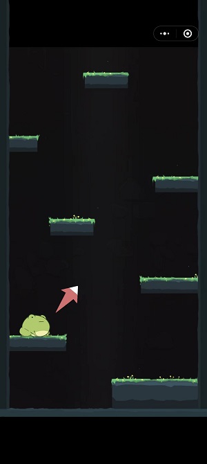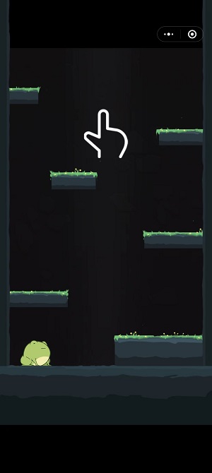 4、根据提示,按住屏幕任意位置,控制小青蛙的跳跃,让井底的青蛙可以达到井口去看海;
