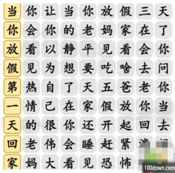 汉字找茬王是最近抖音上很火的益智烧脑解密类休闲小游戏,游戏精心设计了很多有趣的关卡,其中放假的老妈这一关需要玩家正确连接歌词,相信不少玩家在此关浪费了不少时间,下面就一起来看看本关攻略吧。