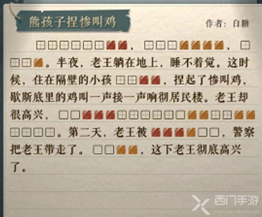 在海龟蘑菇汤游戏中会有很多的关卡,其中熊孩子捏惨叫鸡这个关卡也是关于熊孩子的,不过这个故事剧情还是很好的,那么这个关卡怎么过呢,接下来小编为大家带来了详细介绍,希望可以帮助到大家。