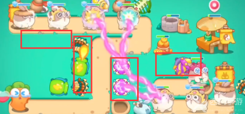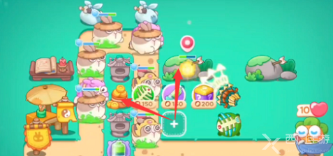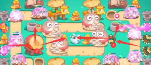 1、开局债市在上方位置使用随机炮塔,先打兔子,后清理道具;