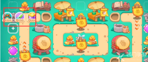 2、先清理右侧的那个大元宝,清理完往左侧多放一些道具,随机炮塔即可;