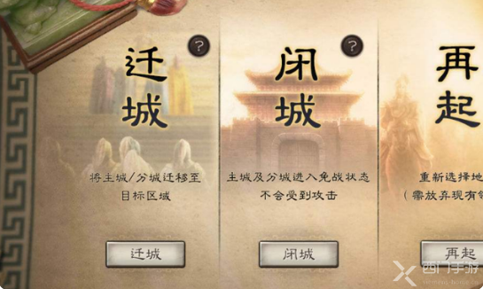 2、然后就可以看到对城池的操作选项,分别是迁城、闭城和再起;