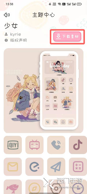 2、然后点击上方的【下载素材】按钮,将图标素材下载到手机的相册中;